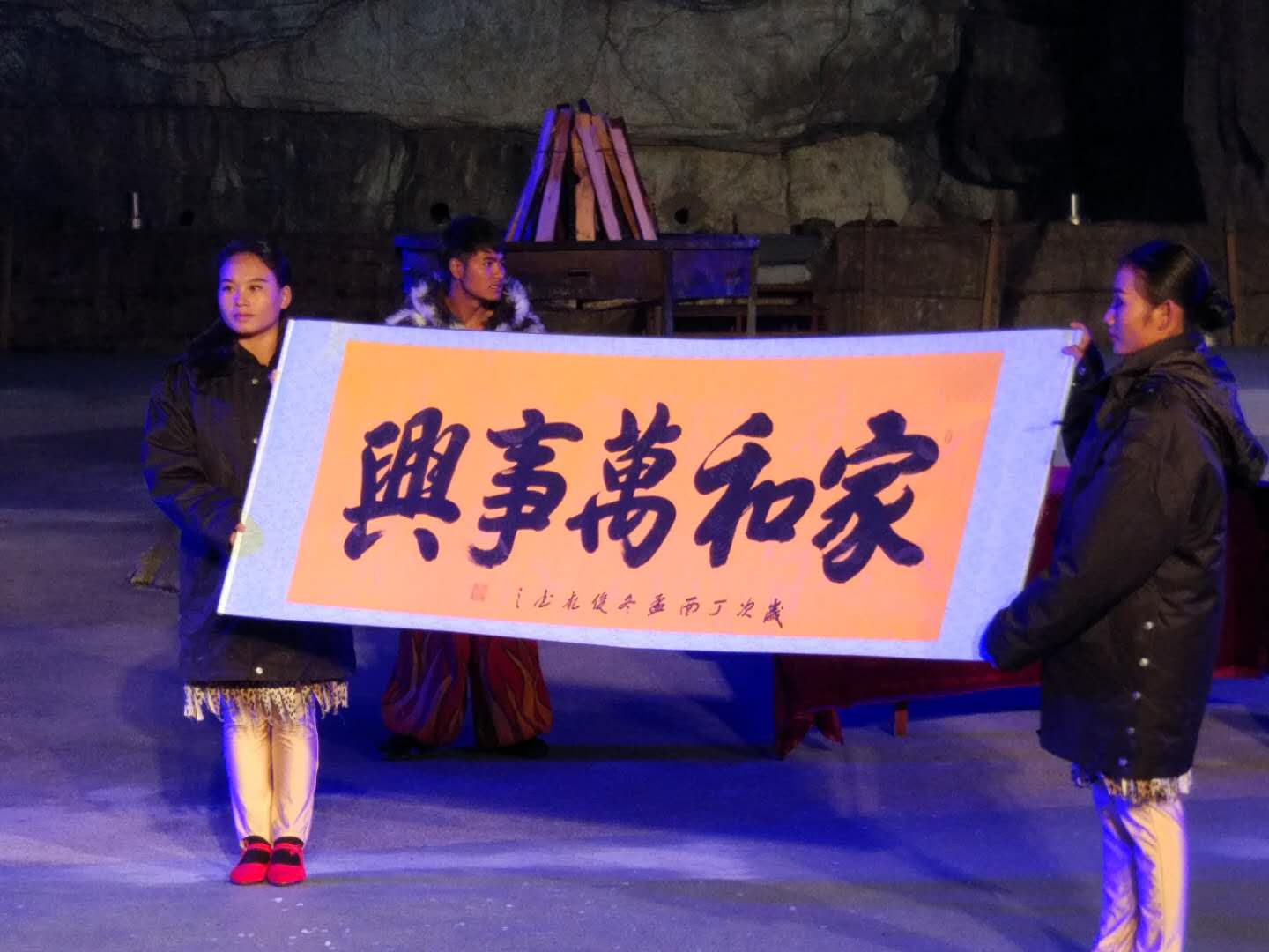 晚上7點(diǎn),在演藝廣場(chǎng)有一場(chǎng)篝火晚會(huì),晚會(huì)上進(jìn)行了葫蘆絲獨(dú)奏、魔術(shù)表演、歌曲演唱、舞蹈展現(xiàn)等一系列演出,在這寂靜寒冷的夜晚里,增添了幾分鬧騰,幾分溫暖。