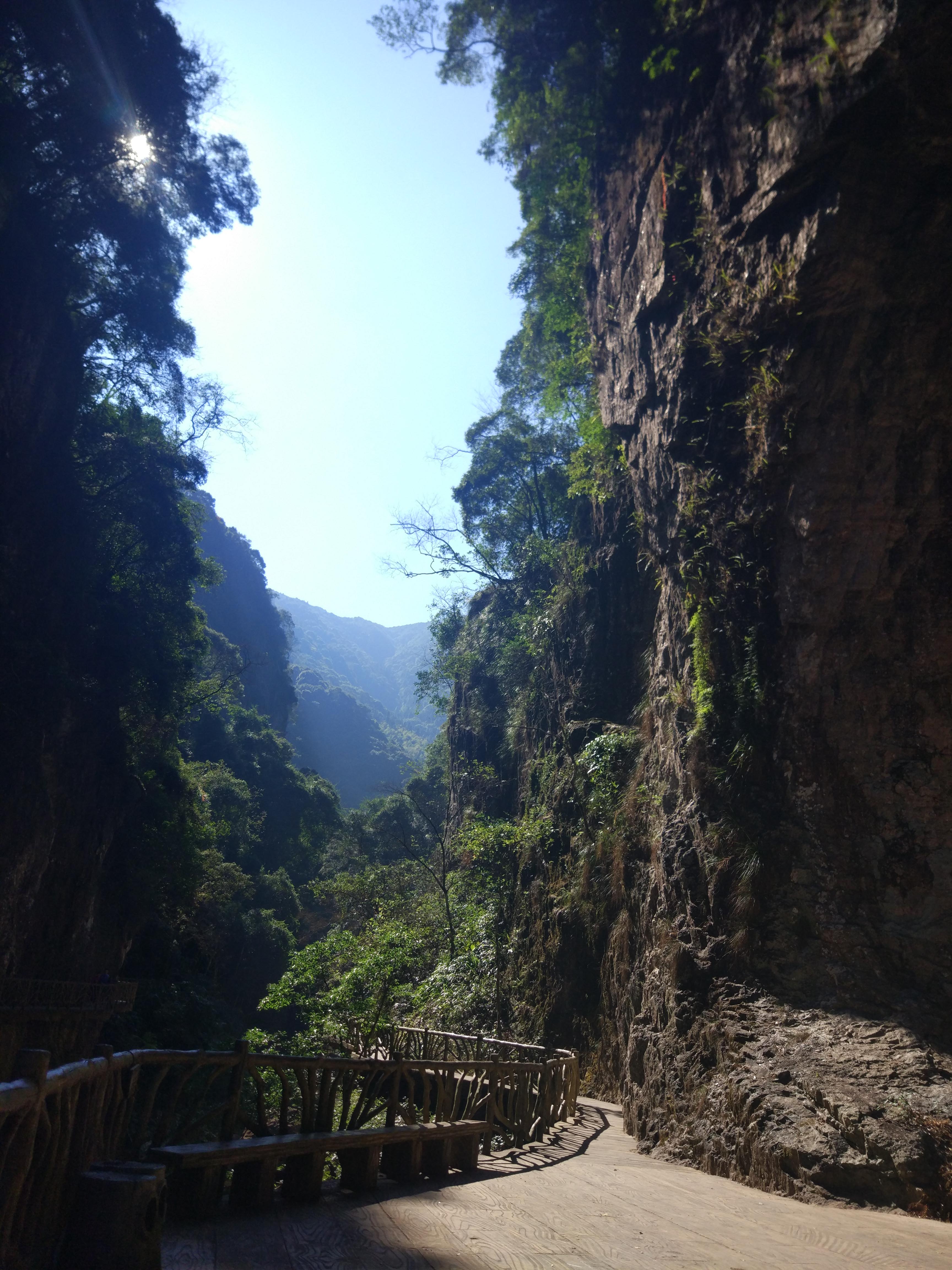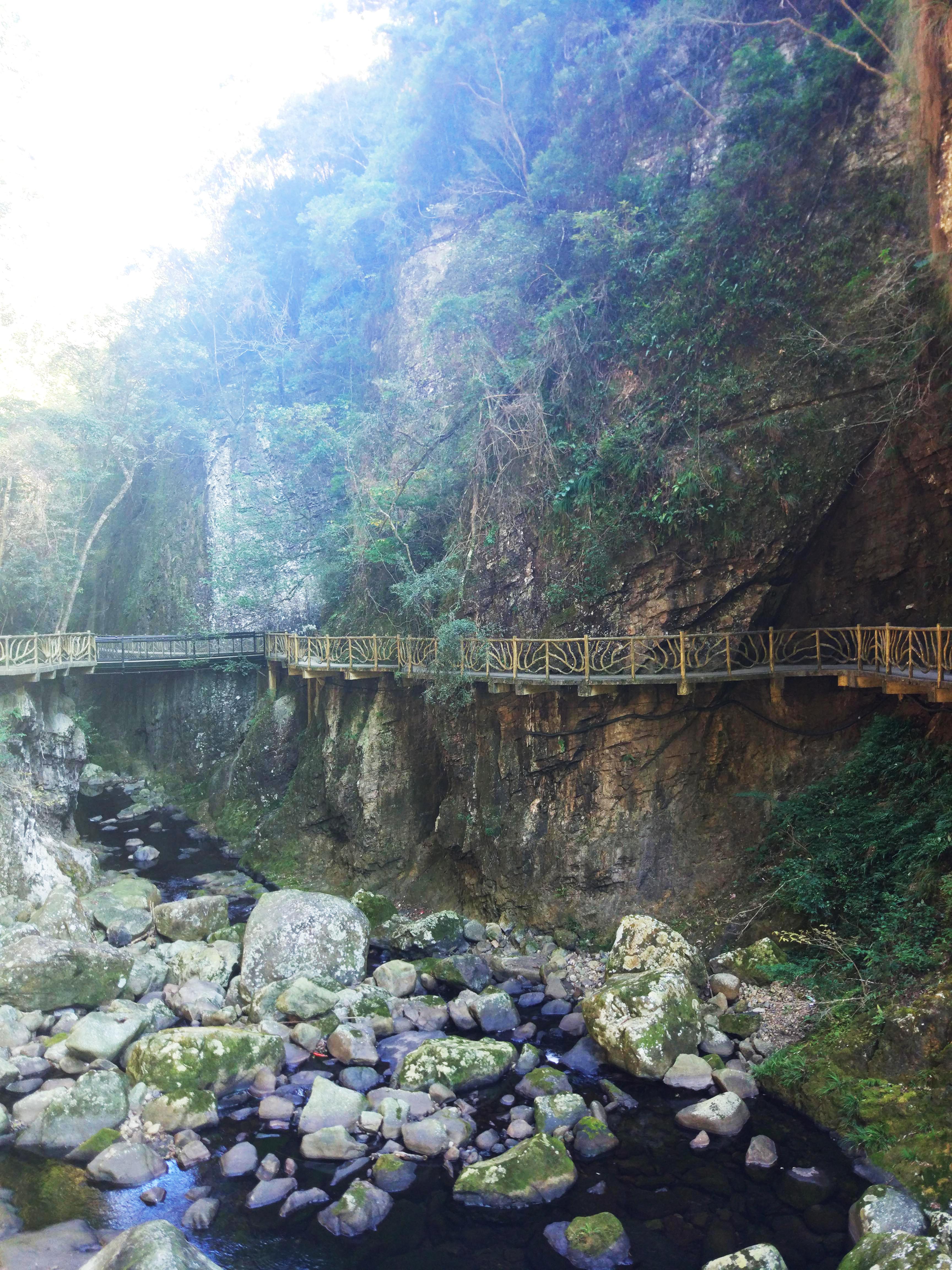 高山峽谷景區(qū)由“七彩瀑谷景區(qū)、紅河谷景區(qū)及翡翠谷景區(qū)”三個(gè)景區(qū)組成,壯麗的瀑布群是云頂峽谷的一道視覺盛宴,大家順著棧道一直往下,足足走了2-3個(gè)小時(shí),把瀑布從頭看到尾,很幸運(yùn)當(dāng)天天氣很好,看到了懸掛在瀑布中的彩虹,也看到了“飛流直下三千尺”的景觀。這是中國(guó)險(xiǎn)而長(zhǎng)的棧道,溯溪而下貫穿了七彩瀑布、紅河谷、翡翠谷三大景區(qū),懸空架設(shè),瀕臨深淵、緊貼峭壁;驚、險(xiǎn)、奇、 幻、幽、宏;一段比一段驚險(xiǎn),更挑戰(zhàn)你的心理極限。